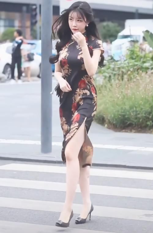 女孩的“梨形”完美诠释了旗袍的美。她穿的旗袍和她的身材非常一致。穿上它后,它突出了她的身材曲线,让她的身材看起来实在太好看了,非常有吸引力。