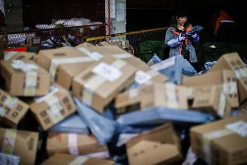 ▲快递已经进入数十亿的时代,包装材料也带来了巨大的消费。thepaper.cn