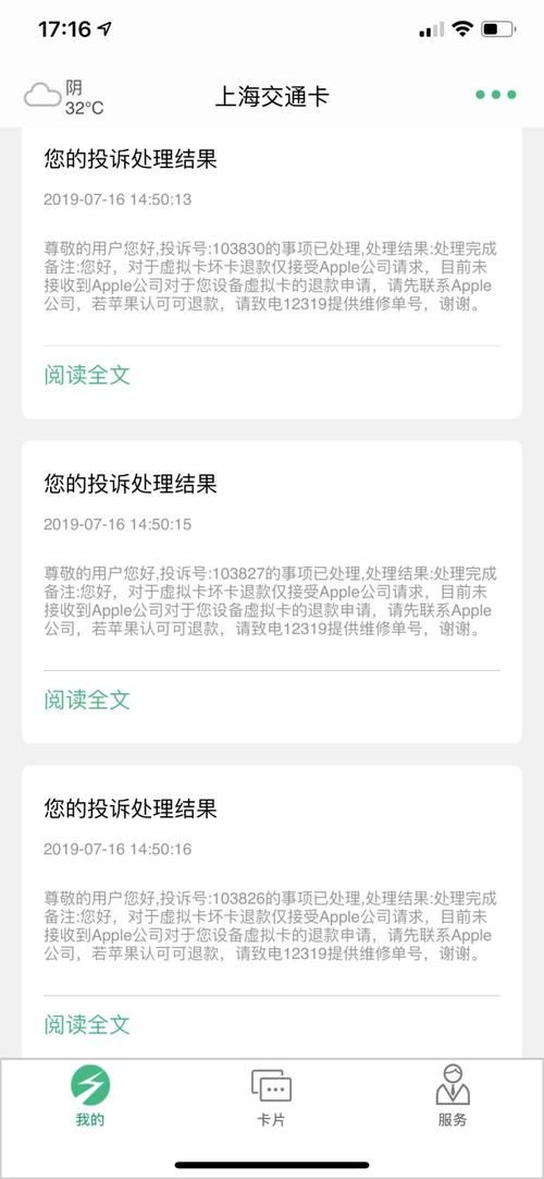 巧合的是,马云也遇到了同样的情况。5月20日,马先生不小心弄坏了他的手机。被送到苹果公司修理后,修理工告诉手机,损坏太严重,无法修复,马云不得不更换新的。然而,旧手机绑定的交通卡仍有大约500元的余额。马云打电话给运输卡公司的“12319”,讨论退卡问题。同样,客户服务人员也要求马云出具“维修订单号”。出于这个原因,“我去苹果公司索要维修订单号”。5月底,马云再次打电话给“12319”,要求退款。五个工作日之后,客户服务部回复说,账单号码在系统中“找不到”,无法退款。从那以后,马先生的许多投诉都没有得到解决。