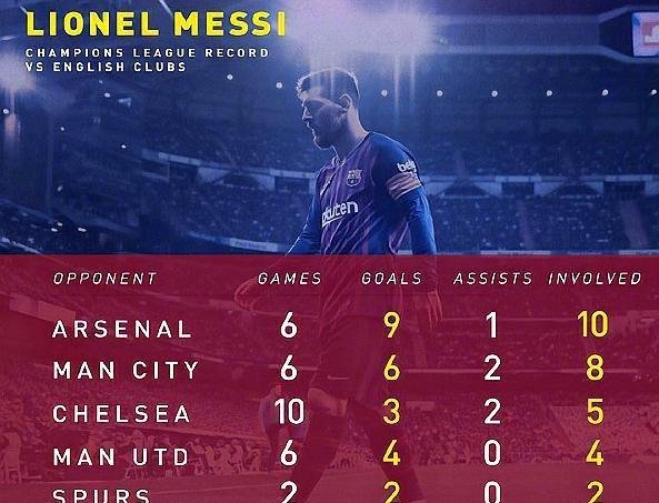 在此之前,巴塞罗那已经在主场面对英国球队42次,28胜,12平,2负。值得一提的是,在诺坎普两次获得3分的英国队都是利物浦队。然而,巴塞罗那上一次在诺坎普失利是在2012-13赛季,当时他们主场3-0输给了拜仁慕尼黑。从那以后,巴塞罗那从未在冠军联赛中主场失利。截至上一轮淘汰赛,巴塞罗那主场不败纪录已经达到31场(28胜3平),是欧洲最高的纪录。在他的职业生涯中,梅西在32场比赛中打进了24个球:6场比赛中对阵阿森纳进了9个球,6场比赛中对阵曼城进了6个球,10场比赛中对阵切尔西进了3个球和5个助攻,6场比赛中对阵曼联进了4个球,2场比赛中对阵托特纳姆进了2个球,但梅西在2场对阵利物浦的比赛中没有进球或助攻。