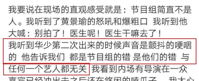 当然,他们不是唯一的。事实上,那天目睹高以翔死亡的大多数人或多或少都感到内疚或难过,东道主华少也是如此。