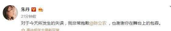 在被送往一个热搜索后,每个人都在等待朱丹再次道歉。没过多久,她就公开向陈丽农道歉。