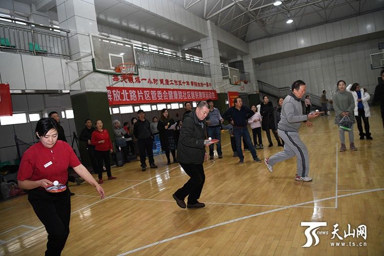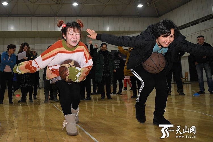 12月2日,乌鲁木齐一中的篮球馆里,一个接一个传来欢呼声和掌声,笑声时有所闻。踢毽子、跳绳、套圈、猩猩持球等八个有趣的项目。让社区居民参加有趣的游戏玩得开心。