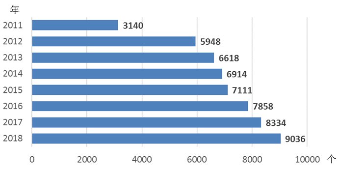 3.残疾儿童专业康复服务能力逐步提高。2018年,国务院发布《关于建立残疾儿童康复援助体系的意见》,明确了残疾儿童康复援助的目标、内容、工作流程和职责分工,进一步提高了儿童康复服务的能力和效率。2018年,全国共有9,036家残疾人服务机构开展残疾儿童康复工作,比上一年增加702家,增幅为8.4%(见图5)。全国有157,000名0-6岁残疾儿童接受了基本康复服务,比上一年增加了16,000人,即11.2%。