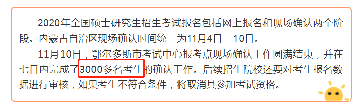 11月10日,鄂尔多斯市考点现场确认工作顺利完成,7天内确认3000多名考生。
