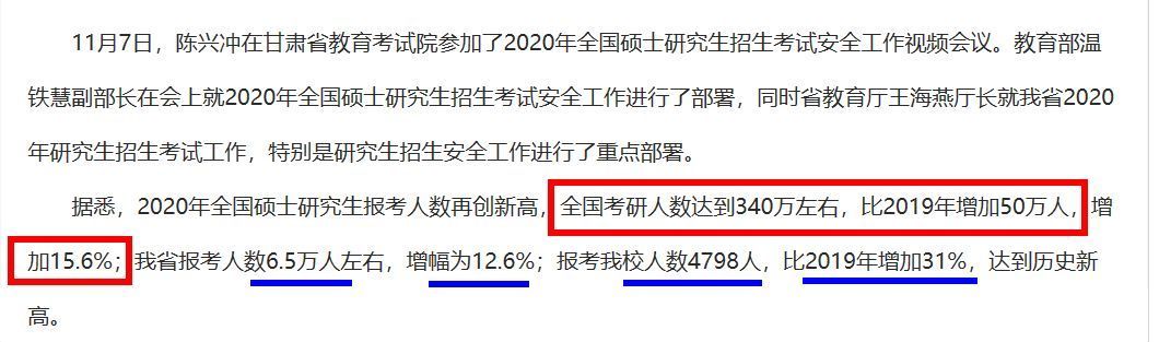 日前,兰州交通大学发布通知称,2020年,全国研究生招生人数达到新高。全国研究生招生人数达到340万左右,比2019年增加50万人,增幅为15.6%。