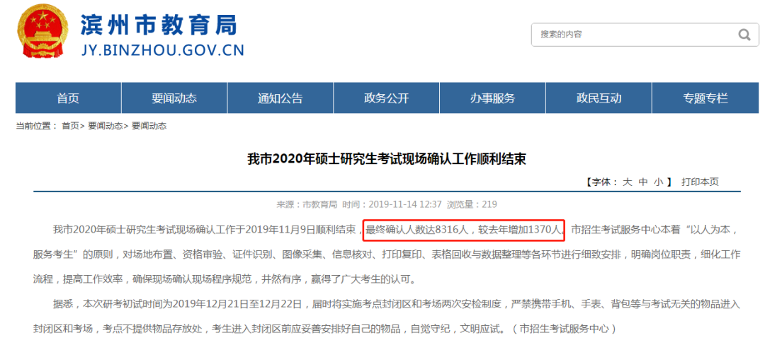 2020年硕士学位考试现场确认工作于2019年11月9日顺利完成,最终确认人数达到8316人,比去年增加1370人。