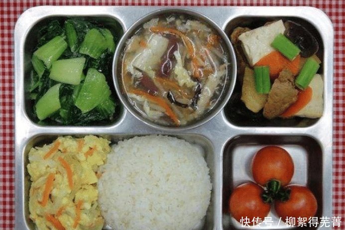中国小学生的第一顿午餐:我们可以看到这一餐相当丰富。不仅米饭是主食,还有丰富多彩的汤、猪肉、蔬菜等。肉和蔬菜作为一个整体是营养和健康的。甚至饭后吃一些水果也能帮助小学生消化肠道,避免食物堆积。