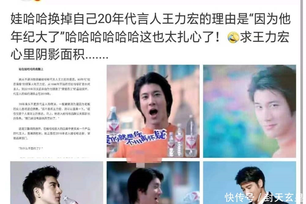 最近,一位知名网民透露,娃哈哈更换了其20岁的发言人王力宏,原因很简单,那就是王力宏变老了...