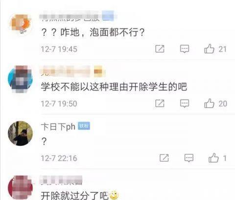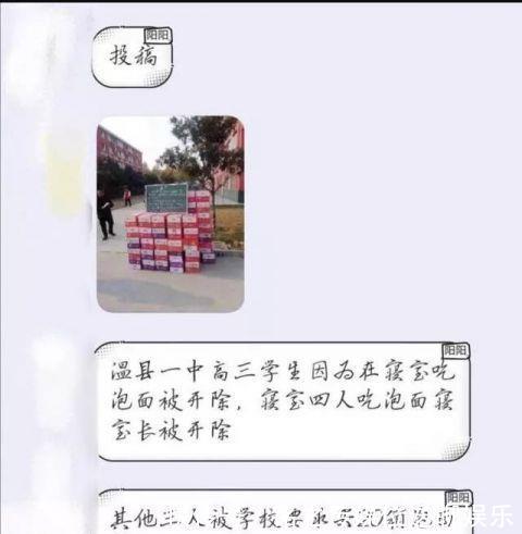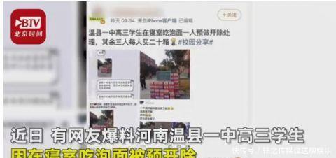 近日,有网友在网上报道,河南省文县一中高三学生被发现在宿舍吃方便面,并被学校开除。