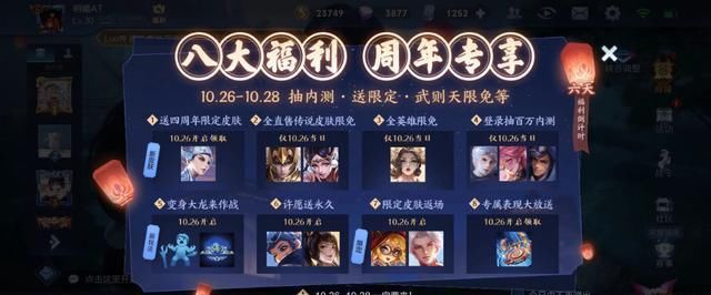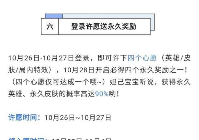 此外,还有一个永久的好处。在26日和27日登录,许下四个愿望,包括英雄、皮肤和游戏中的特效。在周年纪念日,这四个愿望中的一个肯定会实现,官员们说有90%的机会成为永久的英雄和皮肤。
