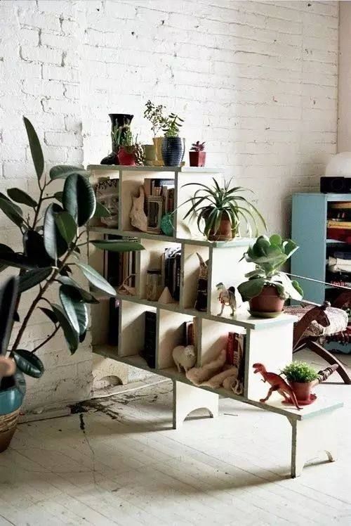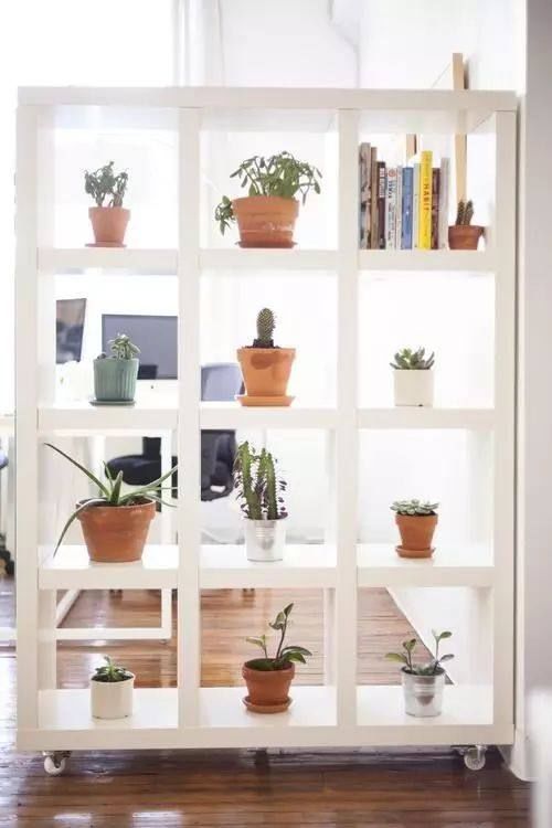 如果你认为隔墙太麻烦,那么我建议你买一个漂亮的花架,在你家的每个角落种上绿色植物。