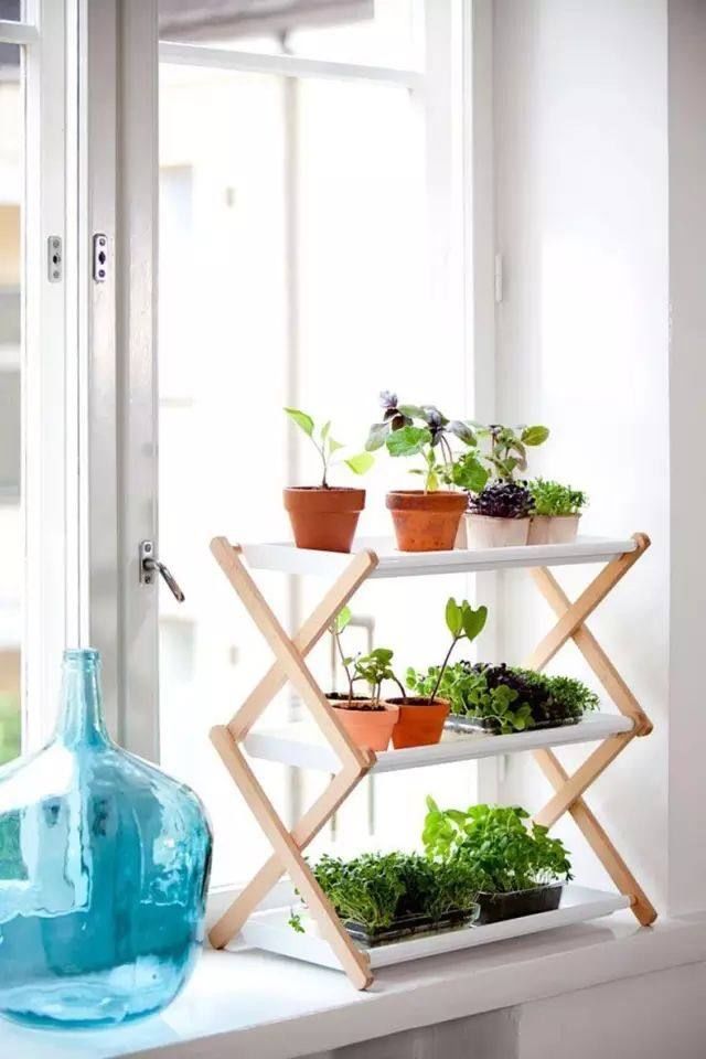 说到种植绿色植物,我相信你首先想到的是阳台空房间。把花架放在阳台上。各种绿色植物都能接受阳光直射。