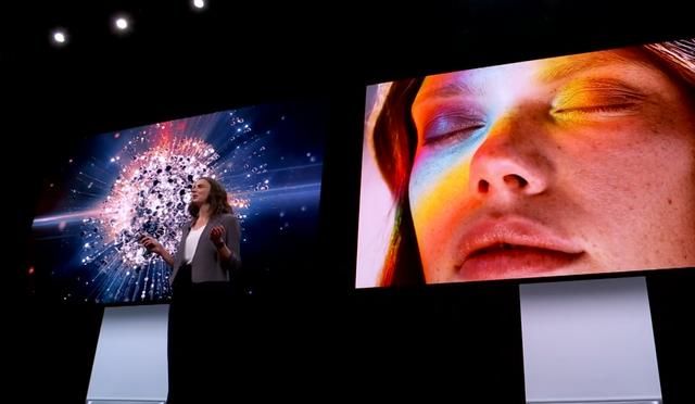 接下来,介绍了苹果专业版(Mac Pro)的显示屏,分辨率为6016*3284,32英寸6K视网膜屏幕。它支持P3色域、10位颜色和参考模式,亮度高达1600纳秒,对比度为1,000,000: 1,并支持6显示器扩展。