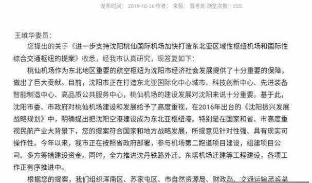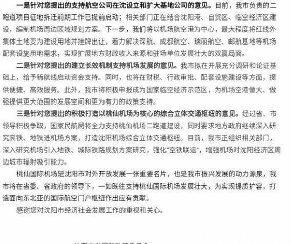 当然,答复中还有一点很重要,那就是沈阳也将对城市铁路和地铁进入机场的计划进行深入研究。
