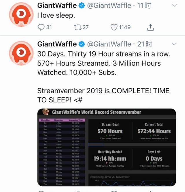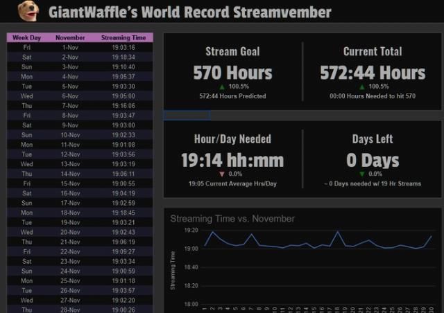 12月2日《信息技术之家新闻》据国外媒体报道,外国主播安德鲁“巨型华夫饼”(Giant Waffle)博丁计划挑战直播游戏的世界纪录。他上个月开始了这项挑战,并在30天内直播了570多个小时。