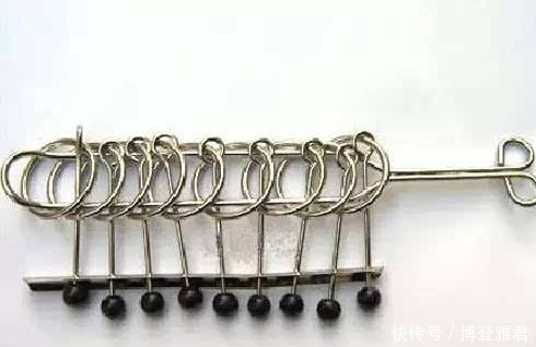 九连联是流传于山西民间的一种智力玩具。九个环由金属丝制成,环套在横板或各种框架上,并穿有环柄。玩的时候,按照一定的程序,通过反复操作,9个环可以解开或合二为一。
