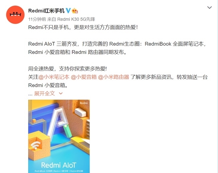 12月3日信息技术之家新闻红色K30系列旗舰新产品大会将于12月10日举行。此前,官员们表示,Redmi路由器AC2100和Redmi小爱扬声器Play等物联网设备也将在会议上推出。似乎新产品不仅如此,现在官方确认红皮书全屏笔记本也将在那时发布。