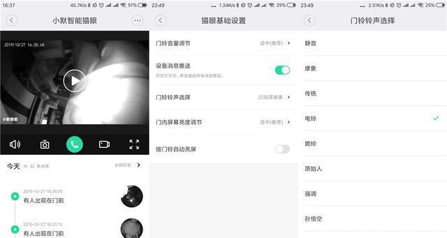 在软件方面,因为小梅智能猫眼支持米佳应用,所以在可操作性和兼容性方面相对较好。值得注意的是,小无声智能猫眼可以在APP中设置门铃声音、屏幕亮度等功能,让汽车感觉更加人性化。