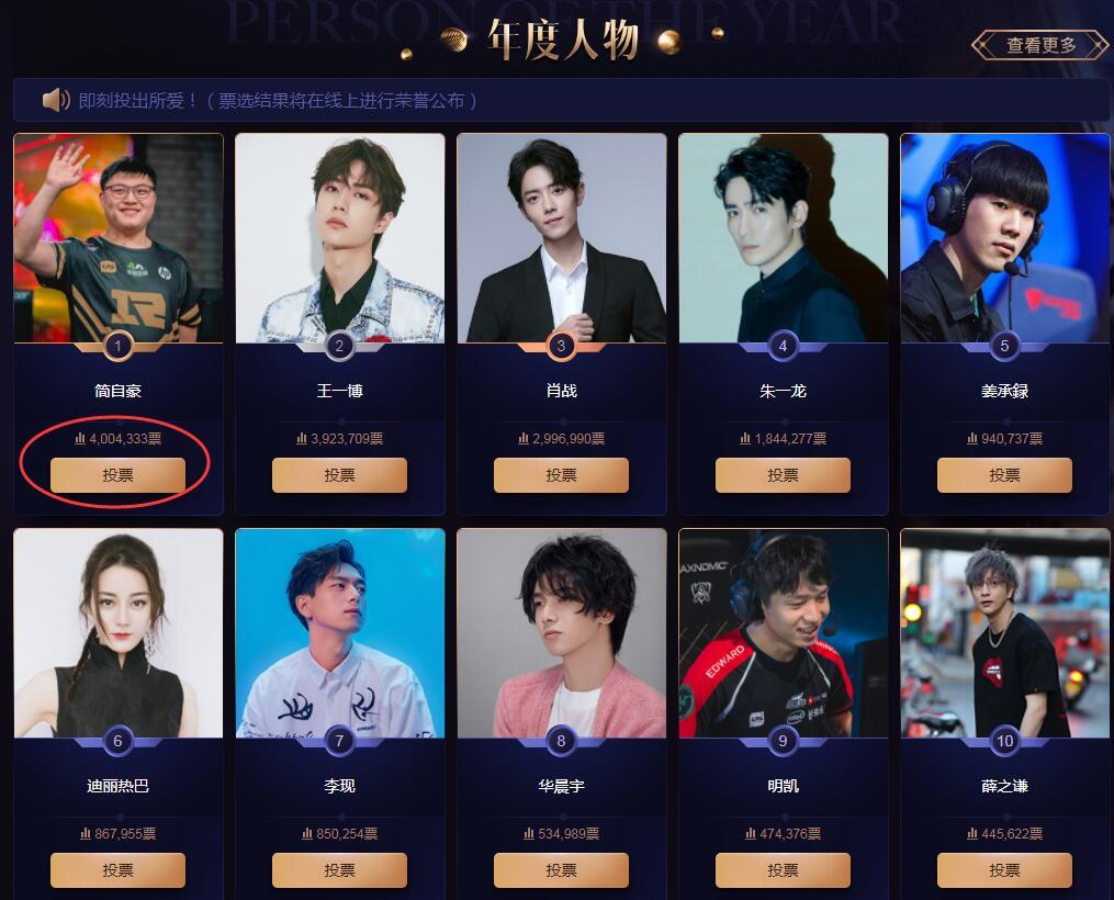 根据前几年的经验,这几乎是不可想象的。电子竞赛圈可以压制娱乐圈。简自豪球迷的战斗力真的这么可怕吗?事实上,这不是真的。如果仔细分析,我们会发现“微博之夜”年度人物评选项目前10名中,只有3人获得了选票,其余都是娱乐明星。