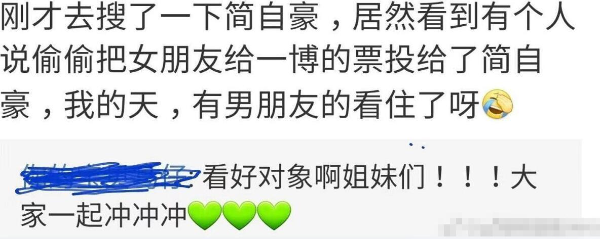 虽然简自豪目前已经成功登顶,但离“微博之夜”投票的结束还有很长的路要走。让我们拭目以待御宅男的战斗力是更持久还是御宅女更疯狂。