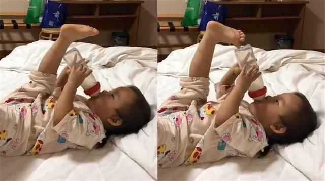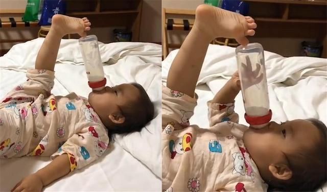 最近,我在网上看到了这样一段视频。一个孩子躺在床上悠闲地喝着牛奶。我看见她拿着瓶子喝牛奶,这时她突然伸出一只脚,脚趾紧贴着瓶底,然后逐渐松开手,她保持着如此艰难的姿势,逐渐喝完了瓶子里的牛奶。