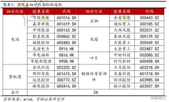 让我们仔细看看风力发电行业上市公司的报告。根据万联证券的研究报告,它选择了24家上市公司,其中包括8家风电场运营商。4个完整的机器制造商;4 .风塔企业;2叶企业;2 .主轴企业;四大锻造铸造企业。