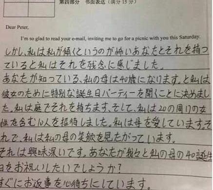 妞妞的学生英语学得不好,但是他们日语学得不是很好。他们用日语写英语作文,对英语老师很生气。过来看看这些学生对老师有多生气。