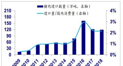 中国猪肉进口及其与国内消费的比例