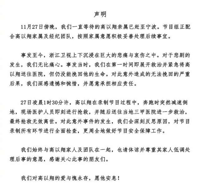 即使事件全面展开,项目团队也发表了一份简短声明,称项目团队将承担处理高以翔事件后果的责任。然而,项目组根本没有提到任何责任,所有项目组成员都离开了,项目暂停了。这就是所谓的冷疗。或者事情很快就会过去,但是生命比天空更伟大。我仍然希望有人站出来为高以翔所有相关人员发表声明或道歉。
