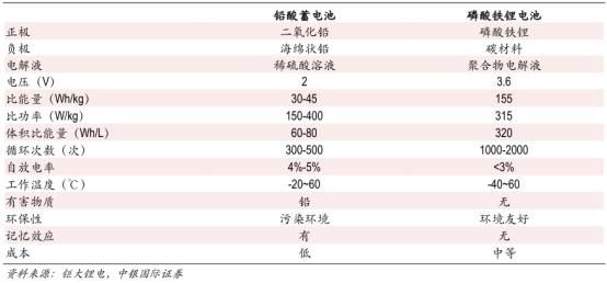 (铅酸蓄电池和磷酸铁锂电池的性能比较)