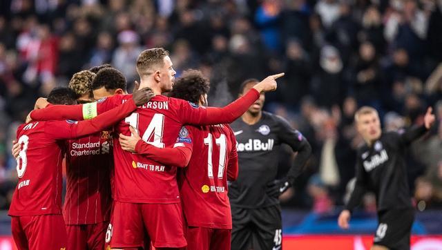 利物浦以2比0击败萨尔茨堡红牛队,获得第一名,晋级16强。(集成电路照片中的照片)