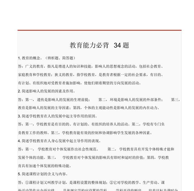 因此,今天老师将分享一个高频率的教育知识和能力的考试问题,34个问题,将提供给考生审查和准备考试。首先,看看信息的内容:
