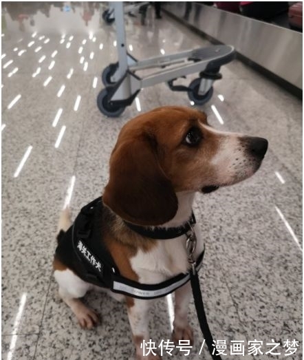 “菲菲”是一只小猎犬,今年3岁。他在机场海关T1航站楼工作,主动性强。他是一个十足的“工作狂”。