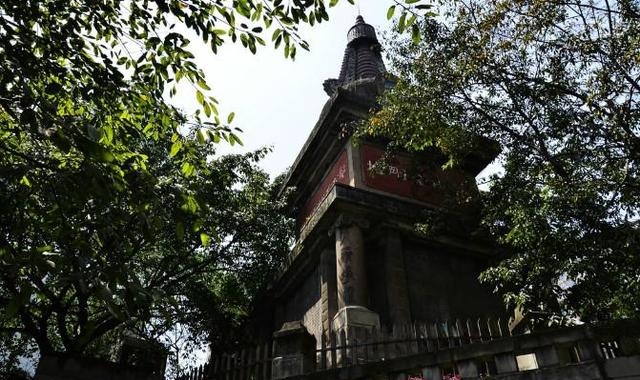 第三条小径矗立着一座具有非凡生命力的佛塔,这是全国罕见的菩提金刚塔。金刚塔高七丈八英尺,有三层,由纯石头制成。它包含几十件文物。有583包经典和150多本书,总共超过70万页。还有大量的金银珠宝、银丝、珊瑚玛瑙和其他善于相信男女的佛教徒捐赠的物品。它们有丰富的文物,在重庆的佛塔中很少见到。1931年2月16日,新建的菩提金刚塔竣工并开放。菩提金刚塔被一堵矮墙环绕,底部四个角落装饰着四根罗马柱子。它建在“凸”形平台基础上,非常壮观。
