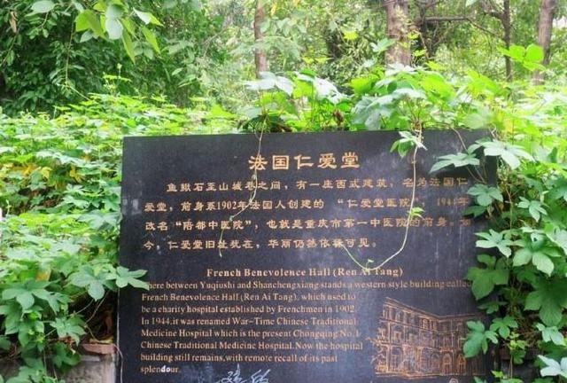 在山路中间,有一座西式建筑,那就是著名的“法国文艺厅”。它于1902年由法国人创办,名为“仁爱堂医院”,1944年更名为“裴度中医医院”,是重庆市第一中医医院的前身。