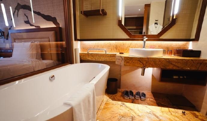 因为第二天早上我要爬长白山北坡,所以我会住在离长白山北坡最近的皇冠假日酒店,步行400米到达长白山风景区北门。整个酒店被广阔的原始森林包围着。该设计从自然生态中汲取灵感。明亮的大堂和300间宽敞的客房和套房与国家风景融为一体。精致的毛皮靠垫、棕色皮沙发和树脂块被用作墙壁。光和光的结合突出了墙壁的通透性。高耸的金属柱模仿山林中高耸的植被,让人们在任何时候都感到舒适地拥抱大自然。