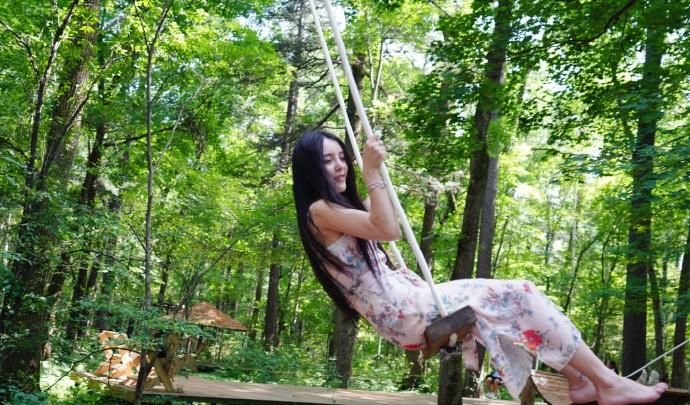 在森林里荡秋千,享受凉爽的漂流,卢水河国家森林公园