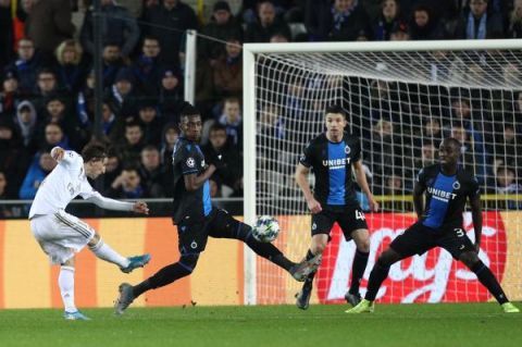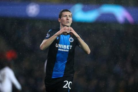 12月11日,布鲁日球员瓦纳科在比赛中庆祝进球。当天,在2019-2020赛季欧洲冠军联赛的甲组比赛中,西甲皇家马德里队以3比1客场击败布鲁日队,晋级十六强。
