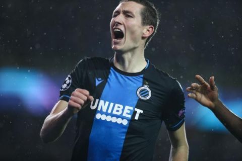 12月11日,布鲁日球员瓦纳科在比赛中庆祝进球。