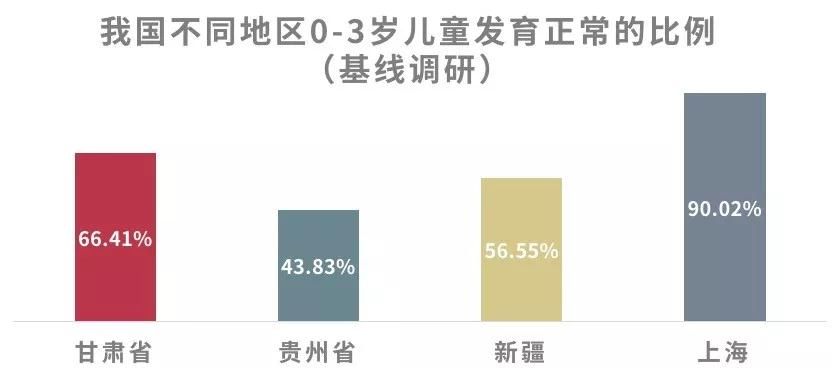 \r\r 90%的上海儿童在丹佛二期筛查(丹佛发育筛查测试,用于0-6岁儿童发育问题的早期检测)中是正常的,而在甘肃华池和贵州七星关只有66%和43%。从一开始,差距就很大。\r