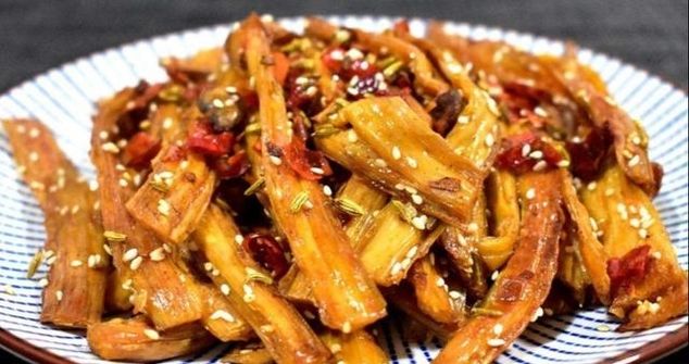 提示:1.豆腐干必须完全浸湿。最好提前一晚用冷水浸泡,这样豆腐干就没有硬核了。