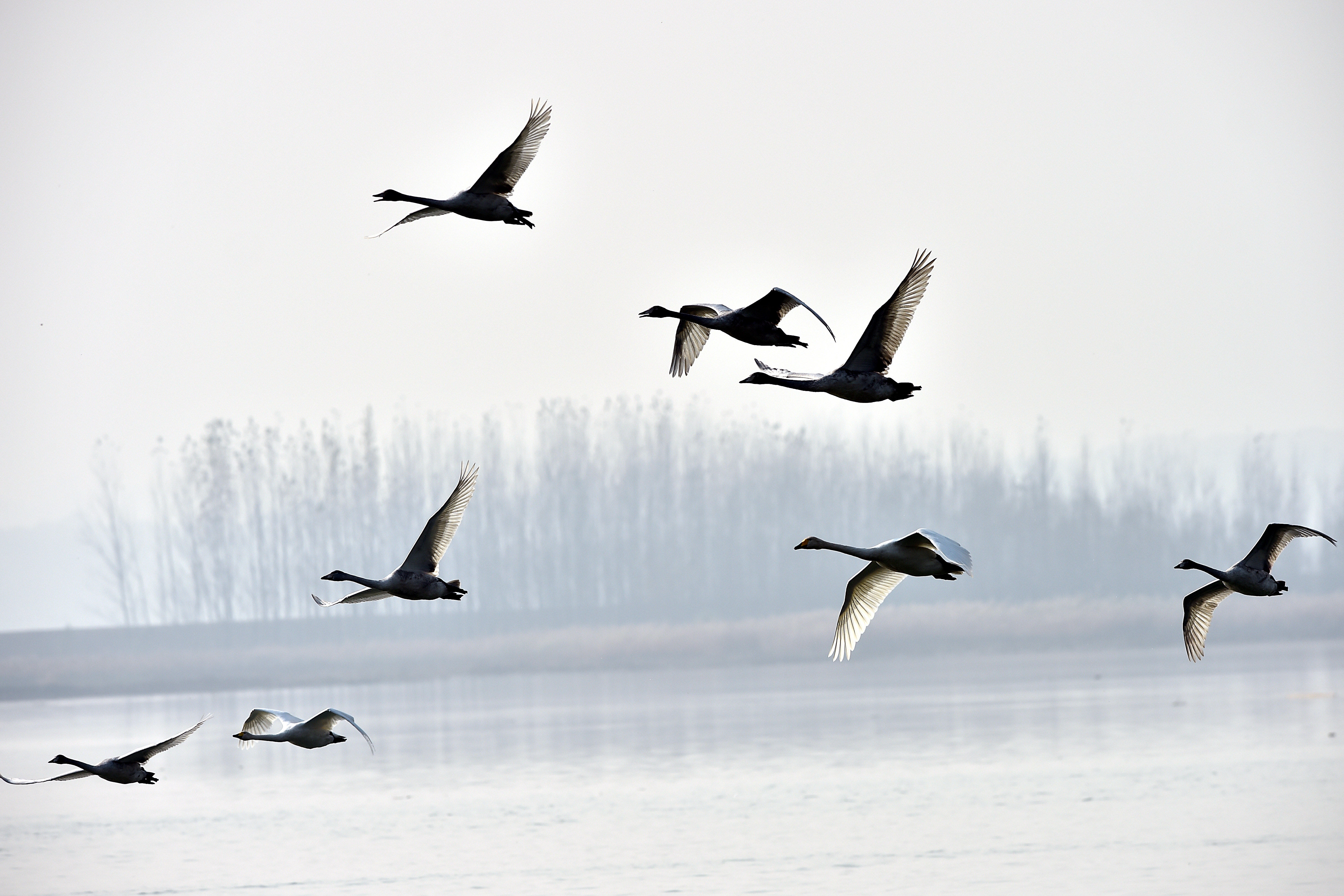 山西平陆黄河湿地位于山西省和河南省的交界处,占地6000多公顷。气候温和,食物摄入丰富,非常适合白天鹅越冬。每年秋末冬初,野生白天鹅从遥远的西伯利亚来到这里生活和过冬。