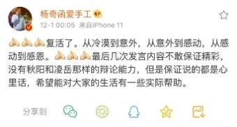 《旗袍说》第六季复活投票已经结束。是杨棋涵在复活后回到了舞台上。正当观众在杨棋涵重返辩论舞台后等待他的表演时,徐继儒发布并删除的一个微博开启了两者之间的相互撕裂模式。吃甜瓜的人没有时间思考这一举动,但他们还是尽快切断了姬旭的微博。