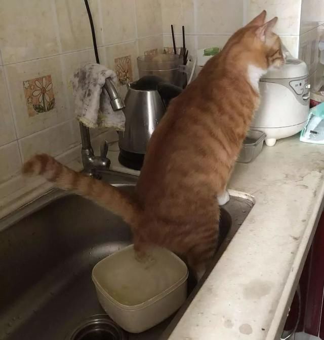 04@肖佳我家的黄煌是盲人。他的技能是找到所有的盆子,然后在里面撒尿。我不知道它怎么知道厨房水槽里有个盆。#很聪明,脚还插在里面,试试水位?