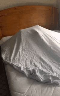 真是个傻瓜,每个人都有这个爱好吗?我一铺开床单,这只猫就像春节一样快乐。
