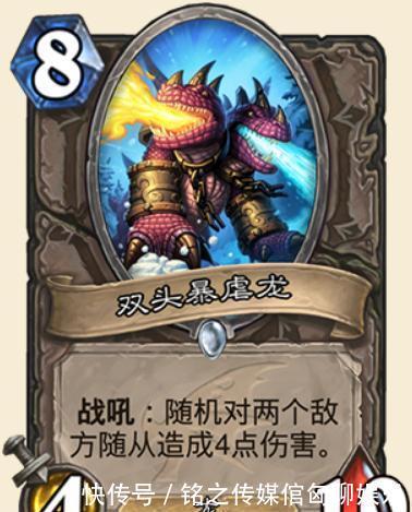 双头暴虐龙,另一只白板龙,4/10的身体至少值7个费用,而战争咆哮相当于多枪的增强版。如果你随机对两个敌人的追随者造成3点伤害,你将不得不支付4点费用。这些双头龙的战斗吼声不值5英镑?12个费用的随行人员现在可以玩长达8个费用。50%超模的概念是什么?我不需要多说吗?特别是,龙属性可以与大量的龙组合相匹配,但是没有理由不应该用龙的形态来填充这张卡。