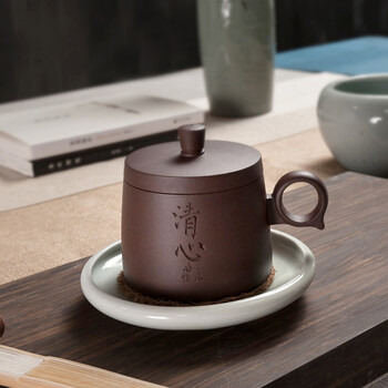 空空茶道 宜兴紫砂茶杯办公杯带盖泡茶杯 清心