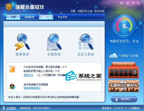 瑞星杀毒软件 2011 23.00.51.10 永久免费版