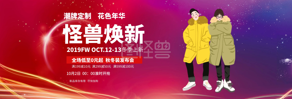 红色炫酷背景天猫焕新男装活动促销海报bann